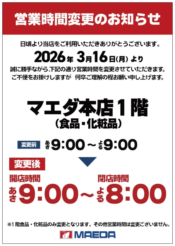 誠に勝手ながら、2026年3月16日(月)より下記の通り